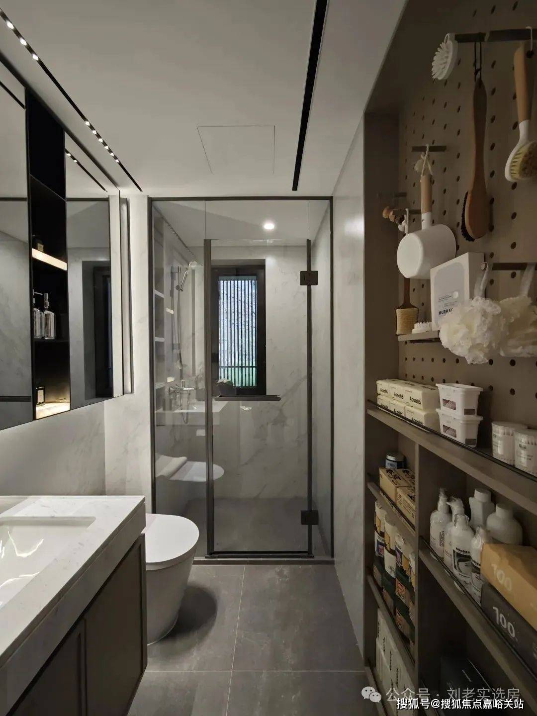 其余,正在卫生间部门,项目正在台盆对面做了一个墙体的向后延迟,再次做出一个超大尺寸的洞洞墙板和储物柜,蓝本只要镜柜的收纳空间霎时就放大了不止一倍。