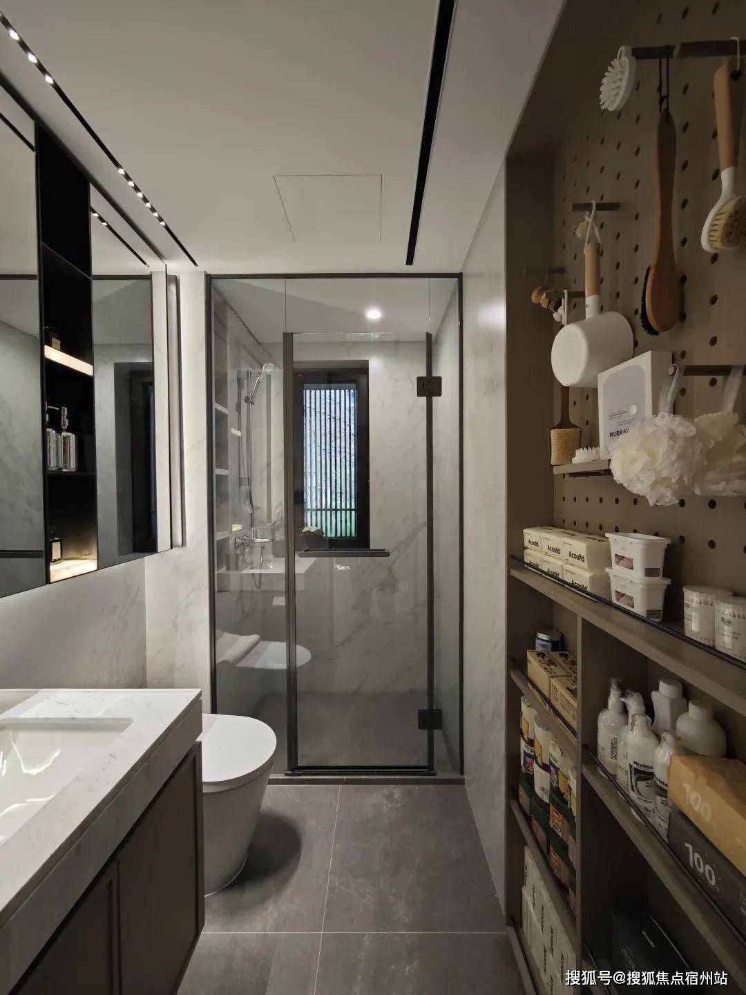 别的,正在卫生间局限,项目正在台盆对面做了一个墙体的向后延迟,再次做出一个超大尺寸的洞洞墙板和储物柜,本来只要镜柜的收纳空间刹那就扩充了不止一倍。